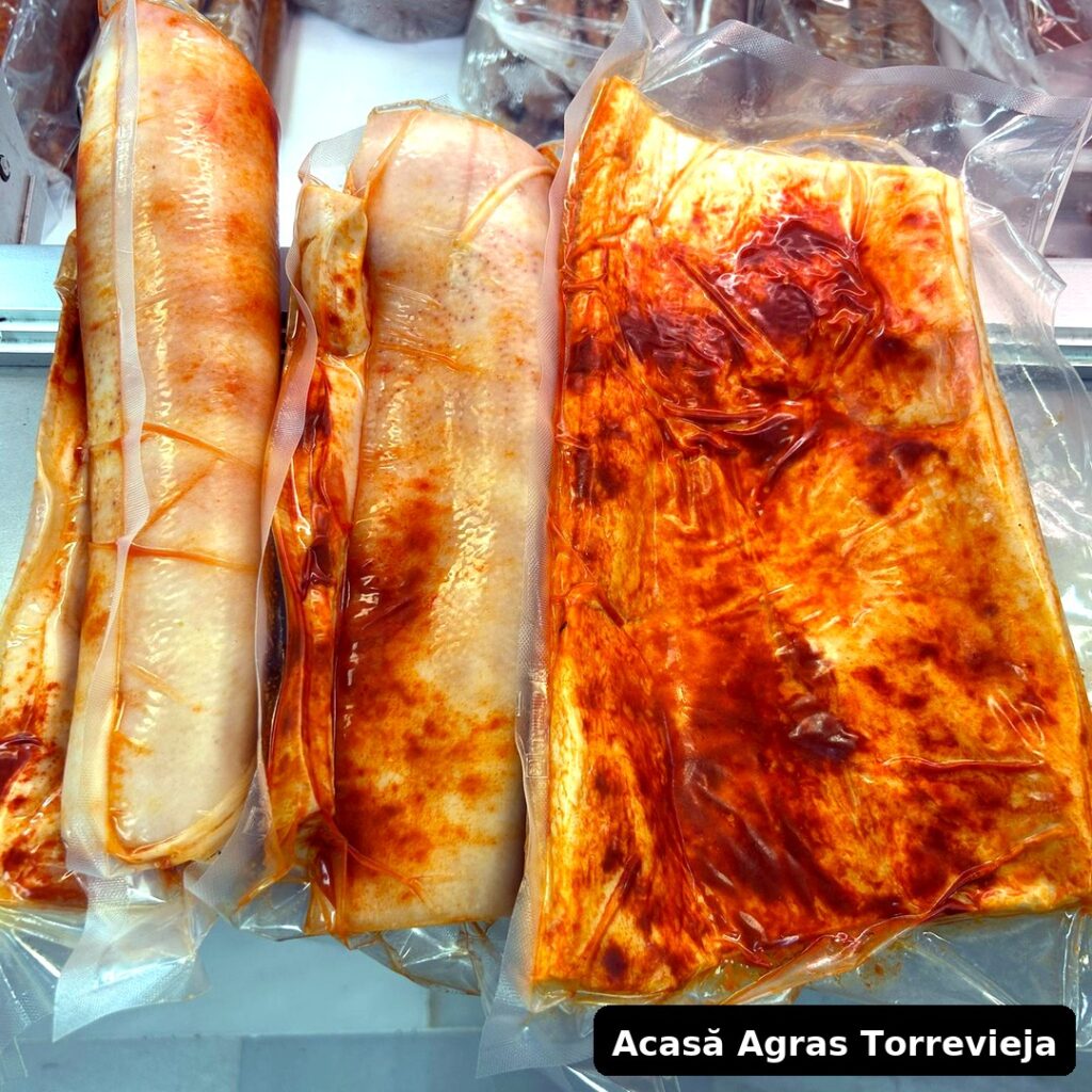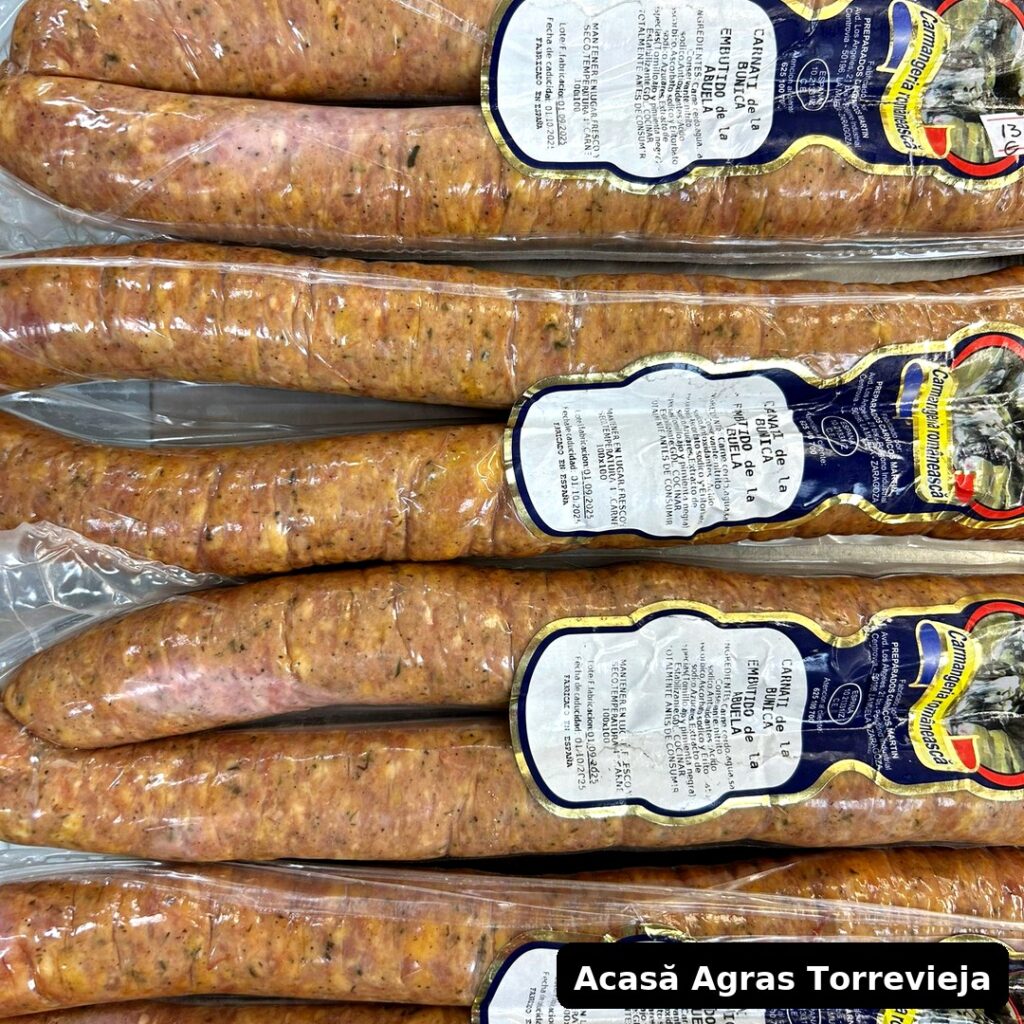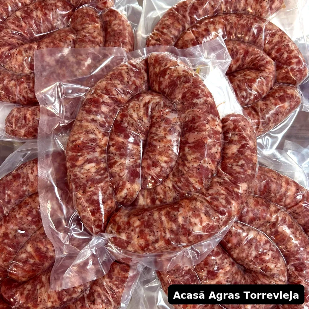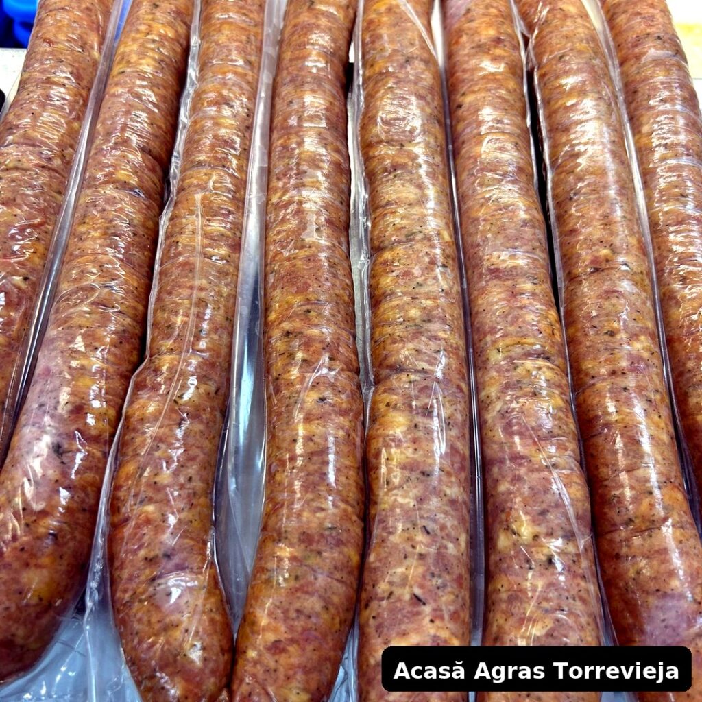 Selecție de produse românești și specialități transilvănene, inclusiv mici cu carne de porc, vită și oaie.